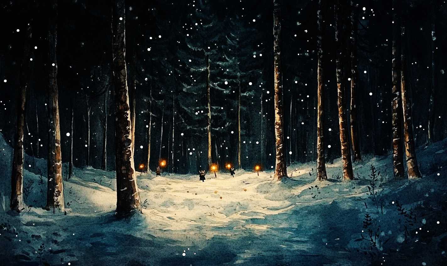 A manók elindultak a négy égtáj felé: az első csapat a Mikulás vezetésével a folyó felé vette az irányt, a második a hegyek felé indult, a harmadik az ősi fenyveseket vette célba, a negyedik a rénszarvasmezőket fésülte át.